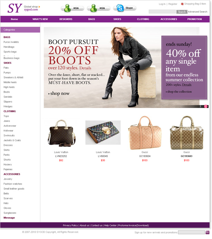 項目說明:外貿包包網站