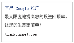 (3)關鍵詞廣告價格比較低廉。相對于CPM計價方式來說,由于按點擊付費,Google關鍵詞廣告的價格相當低廉,使得網絡廣告投放費用大大降低,而且完全可以自行控制,使得網絡廣告改變了只有大型企業才能問津的狀況,成為小型企業自己可以掌握的網絡營銷手段。